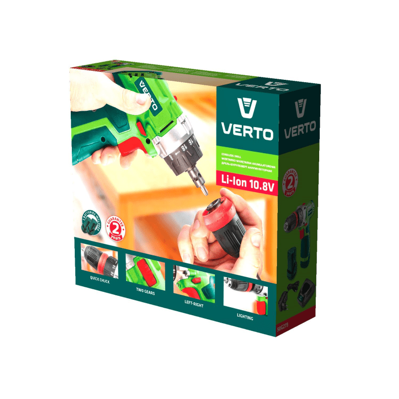 Δραπανοκατσάβιδο μπαταρίας 10.8V της Verto με 2 χρόνια εγγύησης.